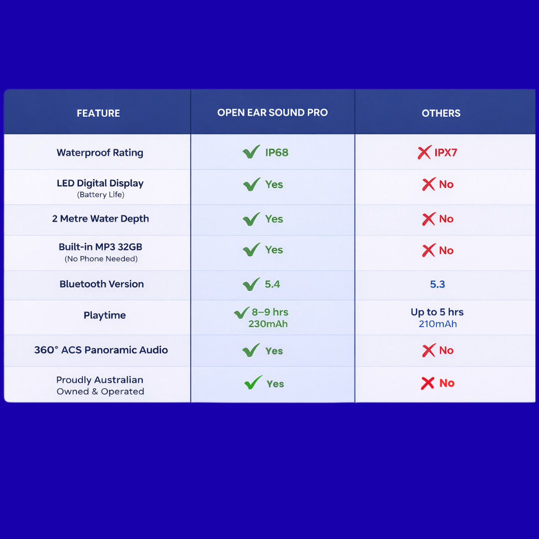 - Felicity P, "As a busy mum, I’m constantly on the go. Switching to bone conduction headphones has honestly been a game-changer. I can still enjoy my music, podcasts, or an audiobook while being completely aware of what’s happening around the house or at the beach. They’re lightweight, don’t hurt my ears, and I love that I don’t have to keep pulling them out when one of the kids needs me.